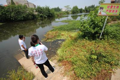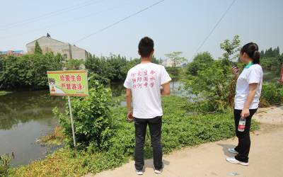 6月4日中午,云梦县沙河乡中学的老师们穿着统一的防溺水文化衫,顶着烈日到辖区齐云庵村吴陈河提上巡逻。沙河乡素称“鱼米之乡”,不仅池塘堰湖星罗棋布,而且有老县河从辖区穿流而过,每年夏季,都是溺水高危期。为了确保学生安全,该校除长期开展防溺水宣传教育外,还在醒目位置设警示牌,组织青年教师不定期到学生放学经常经过的河、池边巡逻,并积极寻求群众配合,将溺水事故预防在萌芽状态。 王云清 摄