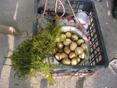 《三月三,吃鸡蛋》农历三月三,地菜煮鸡蛋,成为湖北人,尤其是孝感地区人们的一大习俗。传说古代孝感一带属云梦泽之一部分,是一片水乡泽国,人们都以打鱼为生。因为人们天天在湖里吹湖风,得了头痛病。一天,尝百草的神农路过云梦泽,看到一些人因头痛在湖滩上打滚。神农很可怜他们,就到处找草药,为这些人治头痛病。可是什么药吃了也无效。三月初三这一天,神农从山上捡来几个野鸡蛋,又挖了一大把地菜,拿到船上煮给人们充饥。人们吃了用地米菜煮的鸡蛋后,忽然感到头不痛了。后来,三月初三吃地菜煮鸡蛋就成了习俗,一直沿续至今。每年农历三月三这天,人们就要用地菜花煮鸡蛋吃,借以防治头痛的毛病。三月三,人们就到野外扯回带花的地菜,有的拿到街上卖,有的将用地菜煮熟的鸡蛋拿到街上销售,这天的农贸市场,到处可以看到买卖地菜花的人们,还有的居民趁着早晨跑步、散步的时间,在野外带回一大把也地菜花,煮鸡蛋食用。这是笔者农历三月三上午八时前在云梦城乡拍摄的一组采地菜花、买卖用地菜花煮熟的鸡蛋的镜头。云梦县委大院陈保忠