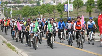 6月5日,由十堰市环保局、郧县人民政府主办的自行车环湖行在郧县柳陂镇卧龙岗社区举行,来自该市的620名自行车选手参加了此次活动。活动旨在进一步提高广大市民的环保意识,倡导绿色出行理念,践行“135”出行方案(即1公里内步行,3公里内骑自行车,5公里内乘坐公共交通工具),让环保理念深入人心。芮智敏 全正 摄