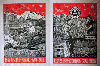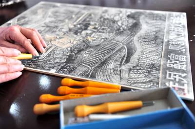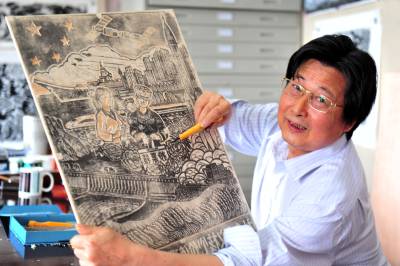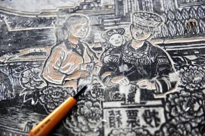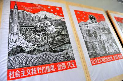 今年5月底,民间艺人罗来清开始构思制作一组体现社会主义核心价值观精神的版画,这些作品将其多年的民间版画创作心得与当地三峡大坝、夷陵地花鼓等元素融合,诠释了社会主义核心价值观国家、社会、个人三个层面富强、民主、文明、和谐,自由、平等、公正、法治,爱国、敬业、诚信、友善共24个字的含义,为传递社会主义核心价值观,传播正能量、弘扬真善美提供了丰富的载体。 本报视界网 张国荣 摄
