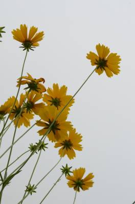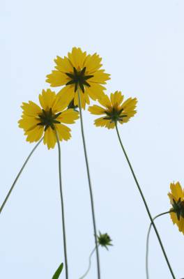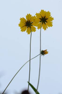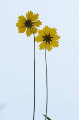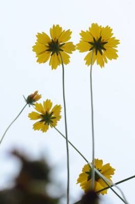 金鸡菊(Coreopsis basalis (A.Dietr.) S.F.Blake),多年生宿根草本,叶片多对生,稀互生、全缘、浅裂或切裂。花单生或疏圆锥花序,总苞两列,每列3枚,基部合生。舌状花1列,宽舌状,呈黄、棕或粉色。管状花黄色至褐色。