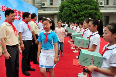 湖北十堰:书香满园春意浓 樱满枝头花正好 校园为民众开放赏花