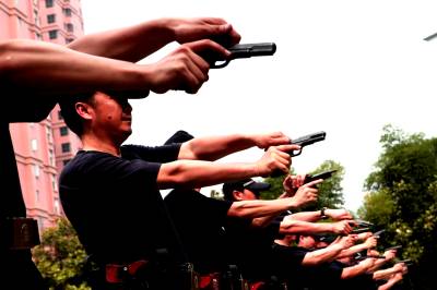 6月5日,在地处长江三峡工程坝上库首的秭归县,参加反恐处突集训的民警开展手枪快速射击训练。秭归县公安局根据反恐处突的现实需要,以“3秒之内出枪”、“首发命中(7米之内)”为标准,分期分批对民警开展贴近实战的手枪实弹射击集训,努力将民警锻打成反恐处突的快枪手。 图、文:吴令剑 电话:18972594962 地址:秭归县公安局政工室 邮编:443600