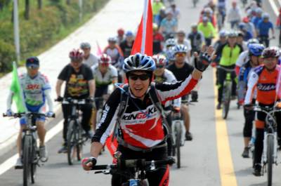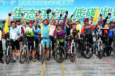 6月5日是世界环境日,十堰市环保局在郧县柳陂镇移民新村卧龙岗社区举办有600多人参加的主题为"生态滨江 低碳出行"自行车和徒步环湖行活动,自行车全程14.3公里,徒步方队为2.1公里,此次活动倡导人们绿色出行,低碳生活,健康快乐。 夲报视界网周家山 赵弘然摄