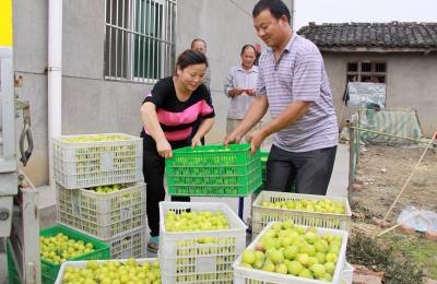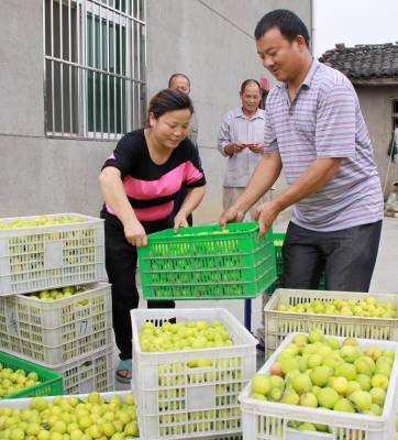 6月5日,被当地村民戏称为“留守科技媳妇”的湖北省竹山县宝丰镇双庙村六组吴艳群(左)正在销售自家果园里的关公李。近年来,该县紧紧围绕“生态立县、产业富民”的发展战略,按照“区域化布局、规模化经营、市场化运作、精细化管理”的原则,坚持抓定位、抓基地、抓技术、抓政策、抓科研、抓企业、抓市场、抓效益,推进林特产业健康发展,稳步发展以茶叶、肚倍、核桃、木瓜、板栗、杏李、耳菇等为主的林特产业。目前,全县林特基地面积发展到70余万亩,林业产业收入6亿余元,户均林业收人800元以上,特色产业收入占农业总收入的60%以上。