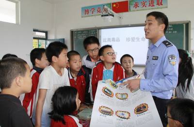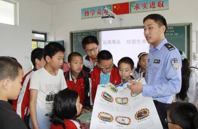 “吸毒会毁灭自己,祸及家庭,危害社会……”6月6日,竹山县公安局宝丰派出所民警深入宝丰镇双坝小学五年级课堂开展“禁毒”宣传教育。日前,该镇教育、公安等部门以“青少年与合成毒品”为主题,联合开展好毒品预防教育“五个一”活动:即上好一堂禁毒教育课、召开一次毒品预防教育主题班会、制作一期校园毒品预防教育板报、观看一部禁毒电影并撰写心得体会、制作一期毒品预防教育校园广播节目。禁毒宣传从娃娃抓起旨在让青少年学生了解毒品的危害,增强防毒拒毒意识,努力维护“学生不吸毒,校园无毒品”,保护青少年不受毒品的侵蚀和危害。