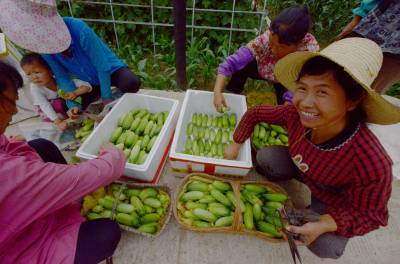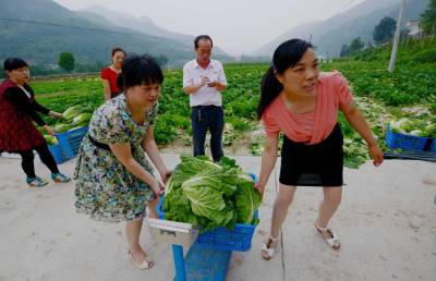 6月5日,保康县寺坪镇庹家坪村菜农把整筐的蔬菜装车。 当日,保康县绿满园蔬菜专业合作社“农超对接”蔬菜基地的黄瓜、白菜、萝卜、西红柿、辣椒等蔬菜开始采收,50万斤新鲜蔬菜按市场需求逐批收获上市。这个基地采用有机蔬菜管理模式栽培种植,蔬菜品质佳、上市早,受到市场欢迎,菜农也获得可观的收益。 (视界网 陈泉霖 杜鹃 摄)