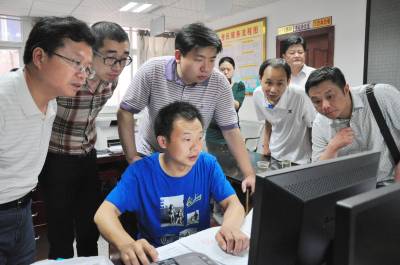 6日,孝感市政法委副书记兼综治办主任刘建明一行10人,来到巴东学习农村网格化信息管理平台操作程序。自央视《新闻联播》《焦点访谈》报道了巴东“信息平台让村民办事不出村”后,成为社会关注热点。孝感市政法委为了学习农民办事不出村信息化系统,组团专程到巴东参观学习。图为刘建明等正在该县官渡口镇五里堆社区向业务受理员请教操作程序。(本报视界网穆世祝摄)15335850858