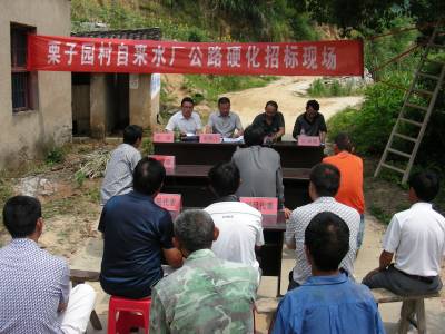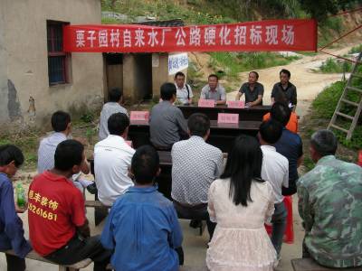 6月6日,黄梅县大河镇栗子园村自来水厂公路硬化招标会在公路现场举行。今年以来,该镇公共资源交易中心推行便民服务,将资产处置、资源发包和工程建设招标竞标会搬到村或现场开,邀请群众进行现场监督,既方便了基层和群众,又确保了资产处置、资源发包等公正公开透明。到目前,该镇已公开招投标11宗,为村集体增收、节支21万元。(本报视界网吴志雄 梅华 摄)