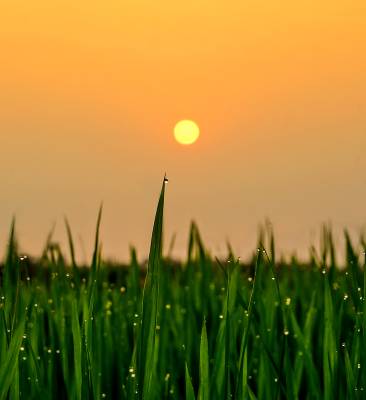 水秧田间看日出