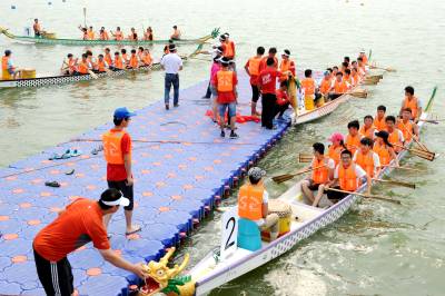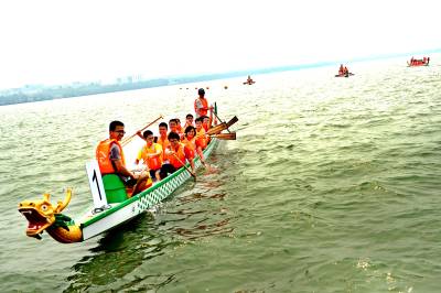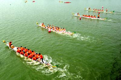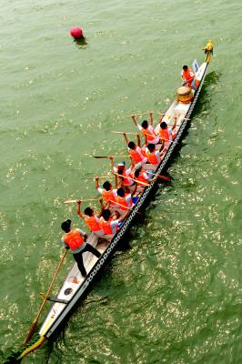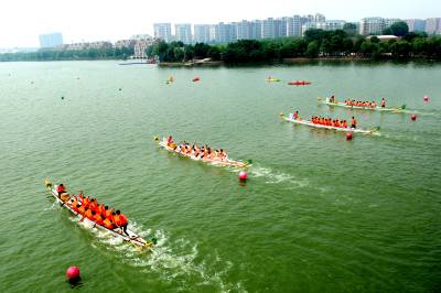 2014年6月7日,湖北经济学院汤逊湖水上运动教学基地,来自华中农业大学、武汉大学、华中科技大学和湖北经济学院等高校的参赛选手,在湖面挥桨摇舵、奋力进击,成为汤逊湖上的一道风景。