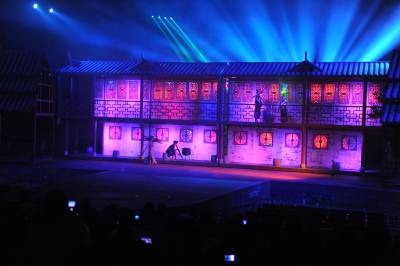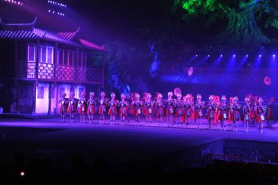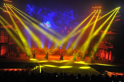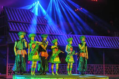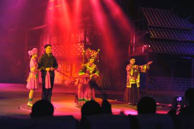 6月8日,当地演员在大型土家族情景歌舞《夷水丽川》中表演。