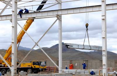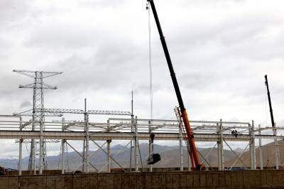 6月8日,在西藏自治区八宿县海拔4335米的工地上,湖北省送变电工程公司百名施工人员在220千伏邦达变电站加紧安装钢结构配件。当日,川藏联网工程之一的世界海拔最高的220千伏变电站邦达变电站三栋共430吨钢结构主体安装完毕,为该站9月底竣工创造条件。