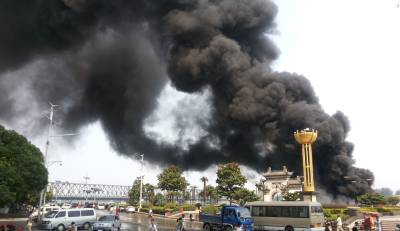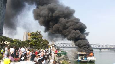 > 汉江襄阳城区江段一游轮失火浓烟冲天