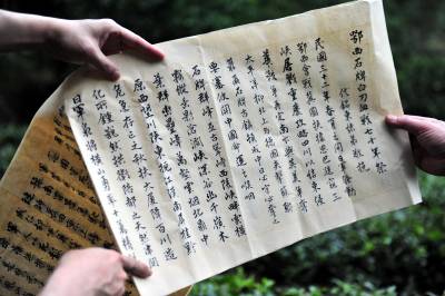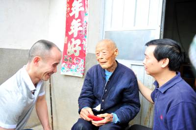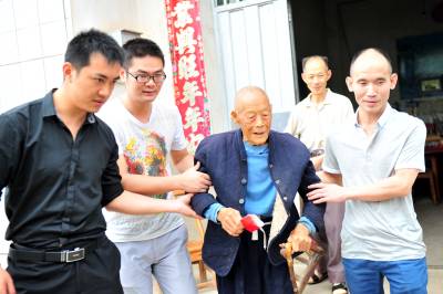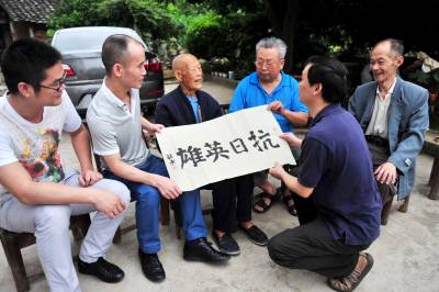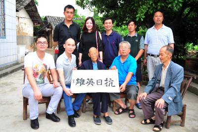 2014年6月8日,粤、浙、鄂等地的5名“关怀抗日老兵志愿者”来到宜昌夷陵区石牌抗日保卫战战场朱家坪村,看望抗日老兵王正元,为他送去慰问金和“抗日英雄”的字画。