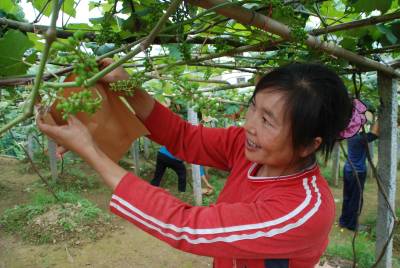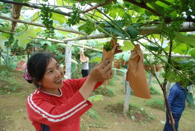金果坪:葡萄园里疏果套袋忙 6月6日,巴东县金果坪乡下村湾村2组陈泽进葡萄园里,社员正在蔬果、套袋。目前该乡注册成立两家葡萄专业合作社,连片发展的200亩关口葡萄,已陆续进入挂果期,果农抢抓晴好天气蔬果套袋,,做好葡萄生长期的田间管理。 巴东县金果坪乡政府 陈祥楚 肖华