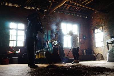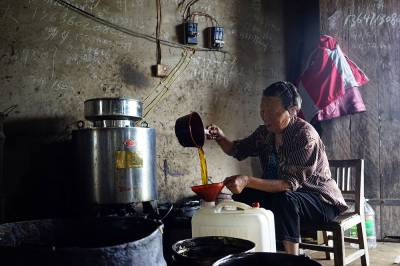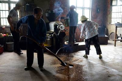 6月8日,团风县杜皮乡於杨岗村的村民趁着农闲时间,把收获的油菜籽拿到村里的小油坊加工菜籽油。