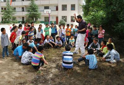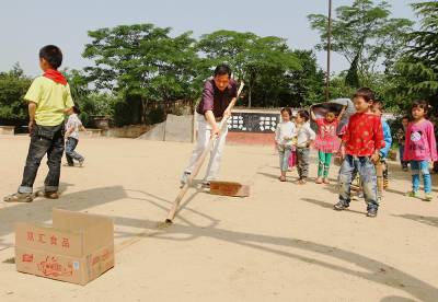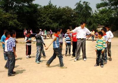 49岁的数学老师兼代体育课的吴怀友更是犯难。吴怀友从没踢过足球,也不懂足球规则。"要说篮球、乒乓球、羽毛球,我还可以教,足球从来没教过。"他显得很尴尬。于是,只好现学现用,我们一番口干舌燥的解释,吴怀友也只弄明白了一个大概:两个球门,两个守门员,每队7人,把球踢进对方球门就算赢。