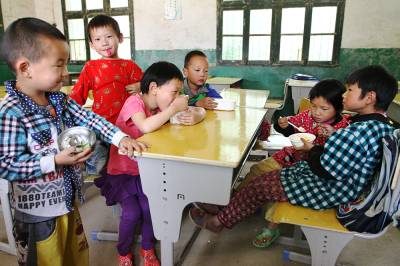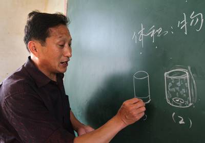 场外记:据55岁的罗庆昌校长介绍:这里有7名教师和1位工友,平均年龄在50岁以上。最长的姜华忠老师59岁,耳朵接近失聪,配有助听器,他任三年级语文、思想与社会、科学、音乐、美术课等五门课程;每位老师每天都有5至6节课。学校算是一所完小,有1-5年级163名学生,服务于7个村,最远的王畈村学生离校有7里路,其他村的学生远近不一,于是有近50名学生在校吃自带饭菜当午餐。