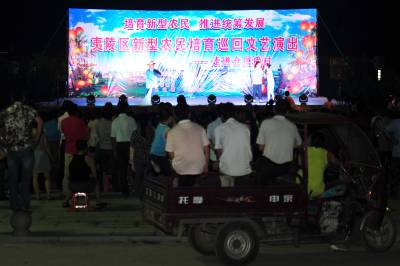 据悉,这次巡回文艺演出是夷陵区在实施“新型农民培育”三年行动方案、推进“百村百团”群众文化建设中,潜心打造的一台具有地方特色、农民喜闻乐见、寓教于乐的新型农民培育专场文艺节目,以此来全面提升农民文明素质、丰富群众精神文化生活,促进农村风气有新改善、农村面貌有新改变、农民素质有新提升,推动了乡风文明建设和城乡统筹发展。本报视界网 张国荣 摄