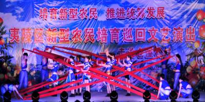 2014年6月9日晚,宜昌市夷陵区首场新型农民培育巡回文艺演出在小溪塔街道仓屋榜村开演,由当地农民文化艺术团和文化馆创作排演的一台以快板、小品、说唱、舞蹈、歌曲等形式展现的乡土文艺节目,赞誉了该区在“新型农民培育”活动中涌现的有文化、有道德、讲文明、守法纪、懂技术、会经营的新型农民风采。