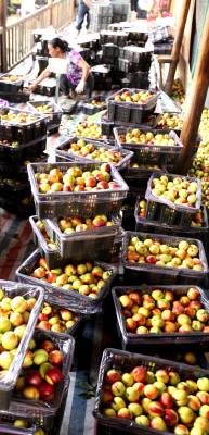 尚市镇党委书记杨志介绍,去年油桃基地新建了滴水灌溉设施,提高了灌溉能力,果农加强了田间管理。加之今年雨水适宜,光照充足,不仅产量翻番,质量也更优,深受客商青睐,市场销路更是不愁,不仅销往全国各地,甚至还打入了俄罗斯、越南市场。目前,全镇油桃总面积已达4万亩,盛果期的油桃有3万多亩,今年总产量可达1.2亿斤,产值近1.5亿元。油桃村已成为尚市农民的摇钱树;该镇近年发展油桃、毛桃、李子等水果,已经成为远近闻名的水果之乡。