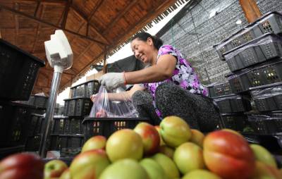 在随县唐县镇华宝山水果农民专业合作社经纪人吴祖树正在帮助武汉水果经销商选装油桃、毛桃、李子。该基地从澳大利亚、日本、新西兰引进“天仙红”等“红肉”系列毛桃喜获丰收。