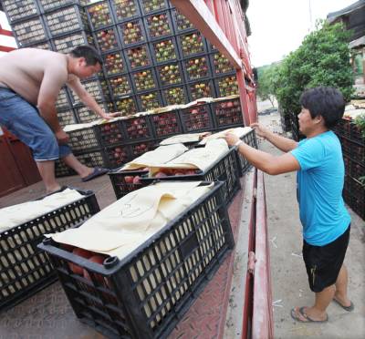 8日,福建水果商许振清告诉记者,他们六月初带着十来个工人住到了群金村,指挥工人到集市收桃、选桃,每天收四万斤油桃,装车后转运到市内的冷藏库,再用冷藏车把油桃运至福建,24小时内,尚市的油桃就能进入福建的超市和水果市场。