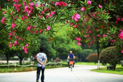湖北十堰:书香满园春意浓 樱满枝头花正好 校园为民众开放赏花