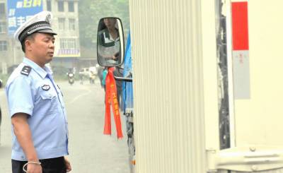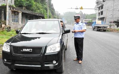 6月10日,咸丰交警开展交叉错岗治违“616”两小时保畅行动,民警在上路纠违。