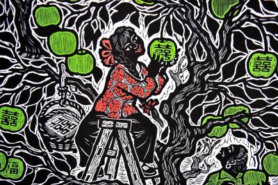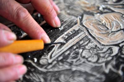 罗来清创作的版画,充满了“真诚、朴实、率真、单纯与自然”的气息,同时镶嵌着夷陵特色的风土人情。30年来,夷陵版画经过历代传承人的完善创新,已具有了它独特的艺术特征,即创作题材的地域性,创作队伍的平民性,构图布局的别致性,造型方法的变异性,雕刻刀法的独特性和印染设色的控制性。作为第六代传承人,罗来清愿望多带学生,把地方特色的东西显现在版画上,让夷陵版画走向更大的舞台。 本报视界网 张国荣 摄