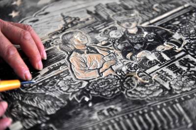 民间艺人罗来清刀刻木板画生活