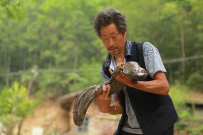 今年68岁的姚永洪,用了二十一年时间,终于成功地用人工助产法,帮助濒于灭绝的大鲵,一次性产卵数千枚,育出大鲵幼鱼千余尾,最大的一条种鲵达30多公斤。