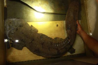 娃娃鱼学名叫大鲵,头似癞哈蟆,身像四脚蛇。浑身粘液,滑腻难捉,叫声酷似婴儿啼哭,寿命可达200多岁,体重的可达上百公斤,最长可达2米,是世界上现存个体最大的两栖动物,在地球上生活了三亿五千万年,是与恐龙同时代的“地球纪念物”和极其珍贵“活化石”,被列入了国际濒危野生动植物名录和中国二级保护水生野生动物名录。