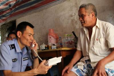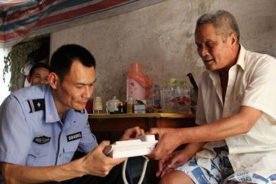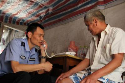 近年来,随着逐渐增多的留守老人,已成为社会各界关注的焦点。在90万人口的广水市,约有20余万的留守老人,而绝大部分留守老人的子女均在北京、广东、浙江、湖南等地打工做生意,很少回家与父母团圆,使老人们倍感孤独。6月10日下午,在开展党的群众路线教育实践活动中,广水市公安局应山分局民警付世海同社区干部一起,来到辖区70多岁的易昌祝老人家走访时,发现老人一直闷闷不乐,似乎有着很多心结没有解开。交谈中,付世海得知老人很想念在广西工作的儿子,赶紧让老人把儿子手机号码找出来,帮老人拨通了电话,并告诉其子女,老人独自在家不易,抽点时间,多回家看看。老人被民警的热情关怀,感动得热泪盈眶。