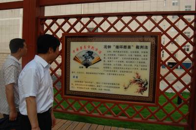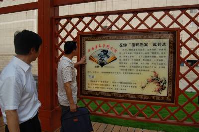 2014年6月11日,市民在云梦县人民法院法文化长廊参观。近年来,云梦县人民法院采取多条途径,在法院办公楼走廊及园区宣传法文化,在院区开设法文化长廊,宣传法治文化,弘扬法治精神,受到市民的欢迎。视界网 陈保忠 摄