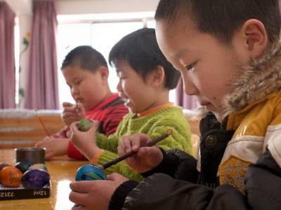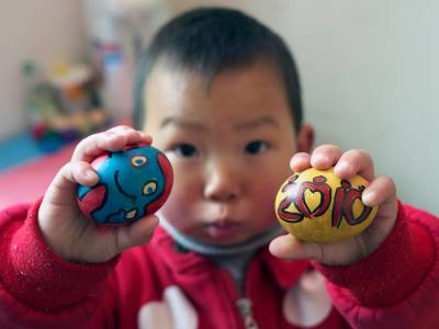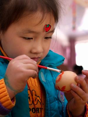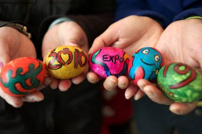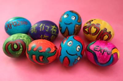 每年农历的三月三,咸宁当地都有吃地米菜煮鸡蛋、在鸡蛋上涂颜色、画上祝福图案的习俗。4月16日,咸宁市咸安区实验幼儿园美术班的小朋友们在老师的指导下,用食用色素在鸡蛋上画上”海宝”、”EXPO2010”、”我们在你身边”等2010年上海世博会吉祥物和口号等美丽的图案,以表达自己对上海世博会美好的祝愿。