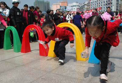4月16日,一场别开生面的亲子趣味运动会在长阳县城广场举行。当天,该县机关幼儿园的546名儿童,和家长组队共同参加了6个运动项目的比赛,现场观众达2000余人。(通讯员杜强)