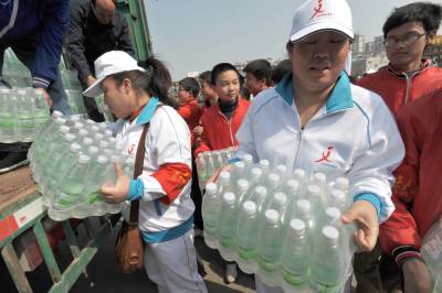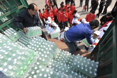 16日下午,由襄樊团市委、襄樊日报社和襄樊广播电台联合发起的”2010向西南五省旱区捐水”启运仪式在襄樊火车站货场举行。承载着襄樊人民爱心的近10万瓶矿泉水将通过火车运达重庆,并统一调配到缺水灾区。截至昨日,团市委共募集抗旱捐款29万余元和价值近12万元的抗旱物资。