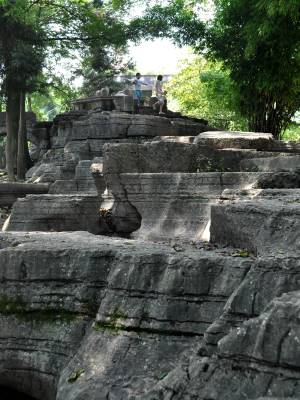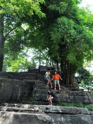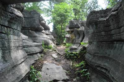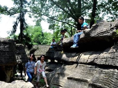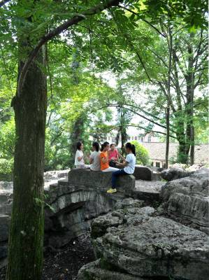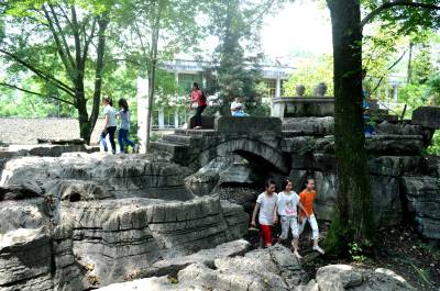 石林中几个“景点”的山石不仅早被玩皮同学的屁股磨得光亮,而且还都被学生们冠以不同的称谓:“园内峡谷”、“仙人桥”、“不二门”、“读书崖”、“林中书屋”等,让人浮想联翩。