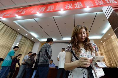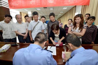 当日,保康消费者委员会、县工商局联合举行首例逾期交房索赔案消费维权退赔仪式,该县消委工作人员将14.8万元的违约金赔偿金分别发放给25位购房消费者。 保康县某房地产公司因逾期交房涉嫌违约,保康县工商局接到购房消费者投诉后,将该公司支付给消费者的违约赔偿款统一发放给购房消费者。 据了解,此次逾期交房索赔案共涉及44位消费者,涉案总金额27万余元。其他首批19位购房者已于2013年10月21日获得赔偿12.4万元。(视界网 杨韬 杜鹃 摄)
