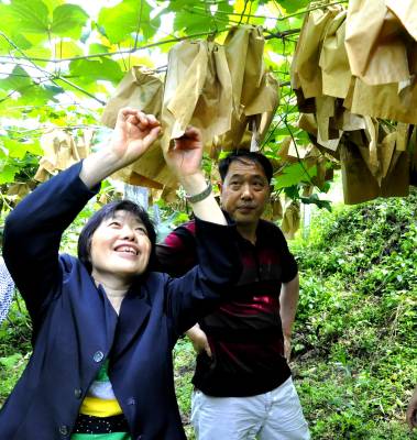 服务“最后一公里” 6月17日,在恩施市红土乡老村村夏家湾组,党员服务队正在贫困户葡萄里了解生产情况。 自党的群众路线教育实践活动开展以来,该乡着力破解服务群众“最后一公里”问题,组建20支“党员服务队”,以农业、林业、畜牧、水利、国土、计生、民政等服务部门为载体,将服务送到村民家门口,积极为老百姓办实事、好事,受到社会的一致好评。(视界网彭绍峰摄)