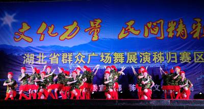 当日晚,湖北省“文化力量•民间精彩”群众广场舞秭归赛区展演活动在秭归县凤凰山南门广场举行, 来自该县各乡镇行政村、社区和老年大学的16支广场舞代表队逐一登台表演,向市民献上了一台精彩纷呈的文化大餐。