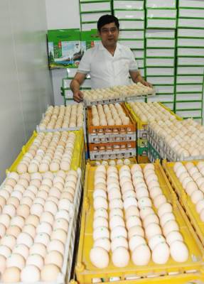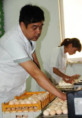 6月19日,郧县湖北俊宏生态牧业开发有限公司的员工正在车间内对松针鸡蛋进行清洗,消毒,分捡,贴标签,装箱。俊宏生态牧业开发有限公司是一家以养鸡业的合作社,拥有湖北,陕西,河南三省200多家养鸡场,年产松针鸡蛋50万斤,成品加工肉鸡900吨,实现产值1.2亿元,每星期向北京运送松针鸡蛋2车20吨。 夲报视界网周家山 摄