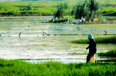 谷城县境内主要有汉江、南河、北河等5公里以上的河流104条,现在有鱼虾的占60%。近年来,为建设美丽谷城,谷城要让条条河流有鱼虾,使大小河流拥有良好水质,在前两年就实施了“河道清水工程”,加大对中小河流治理力度,强化水生态修复,保护上游水源,控制中、下游的水污染,修复河道生态,提高人们保护河流意识,改善水生态环境。图为一位村民正在白鹭栖息的南河河滩上走过。 谷城县城粉阳路33号(县宣传部)帅瑜 摄 (邮编441700)