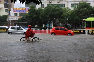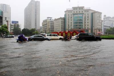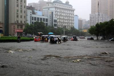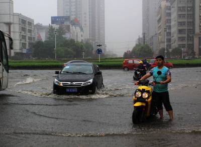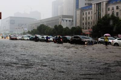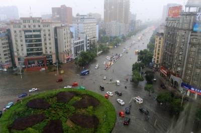 6月20日下午一场暴雨连续下了2个多小时,将大冶大部分城区的主要街道被淹,造成车辆无法通行。这是矿业大厦转盘路段。己成了一片汪洋。