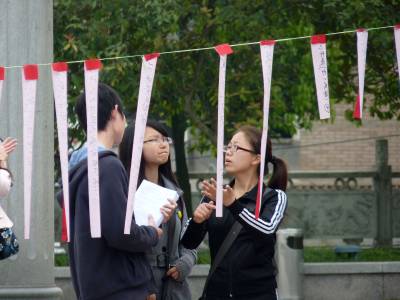 4月17日上午,由湖北民族学院信息工程学院举办的首届”谜”魂阵校园猜谜会在该校大学生广场举行。猜谜会展示了200多条谜语,内容涉及古诗、天文地理、历史知识、脑筋急转弯等知识。谜语集知识性、趣味性为一体,各式各样的谜面新颖有趣,对传承和弘扬民族传统文化、丰富校园文化生活具有重要意义。一群大学生在观看纸条上的谜面时呈现出各式各样的表情。