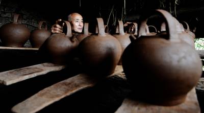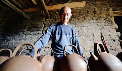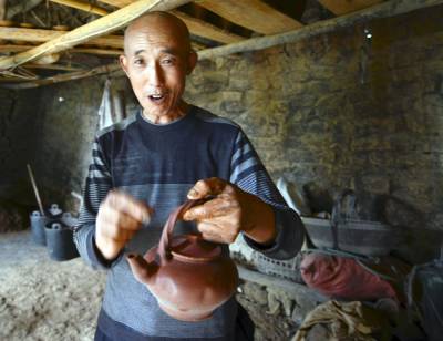 应城市三合镇富硒茶壶艺人胡光荣,1952年出生,12岁开始做茶壶,做了一生,最大的特长也是这个,能做1000多个品种,曾经参加全省比赛,给外国人做专用茶壶,由于现在生意比较淡,曾经跟他学的人都转行了,他自己仍然在坚守,他希望有人来接他手,把这个老祖宗留下的技术传下去。昨天,一位应城籍许老板知道他的情况后主动表态,跟他推销这些富硒茶壶。 视界网郑毅