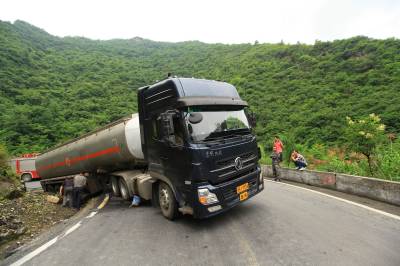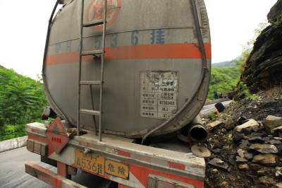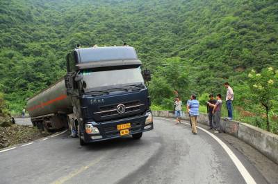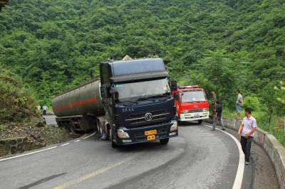 据槽罐车驾驶员王正树介绍,这辆槽罐车拉运的是二甲苯,重30吨,从四川内江运往荆门,行至事发路段时,在弯道处避让一辆货车,因操作不当至后轮胎掉进边沟,导致左后轮胎悬空,车辆受困。所幸罐体未受损,二甲苯未泄露。除客车以下的车辆勉强能通行外,大型货车受阻。