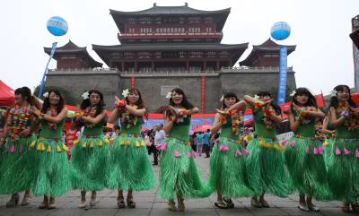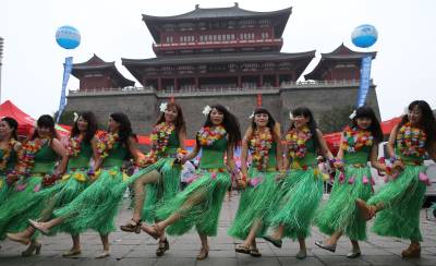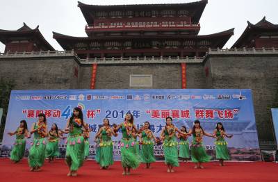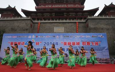 6月21日,襄阳市襄城区的居民在昭明台前跳起欢乐的广场舞。当日,湖北省襄阳市襄城区举行首届广场舞大赛决赛,21支通过了选拔赛获胜的参赛团队同场比“舞”,展现了社区居民良好的精神面貌。为了提高城市的文化品位,襄阳市通过开办“群星音乐厅”等形式组织持续不断的文化艺术活动,用高水平的文化艺术活动来提升群众文化。“群星音乐厅”参演方式不限,器乐类、声乐类、语言类、曲艺类、戏曲类等,提倡传承和表现民间优秀的传统艺术形式。各种表演形式皆可按类别组成专场晚会,也可相互交叉混合编排,以综艺晚会形式表现。